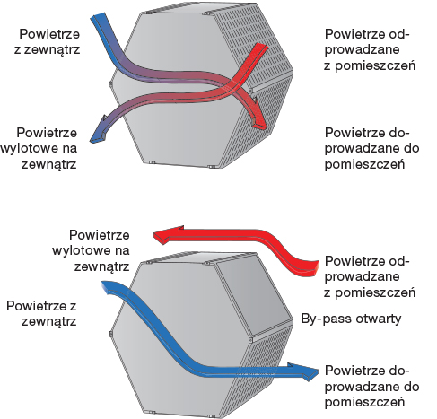 Większość central wentylacyjnych firmy Z ehnder jest wyposażona w automatyczny bypass. Jego zadaniem jest skierowanie powietrza odprowadzanego poza wymiennik ciepła. W lecie zapobiega to nagrzewaniu przez ciepłe powietrze odprowadzane powietrza wstępnie schłodzonego przez gruntowy wymiennik ciepła. Jest to funkcja, którą można wykorzystywać także podczas chłodnych, letnich nocy.